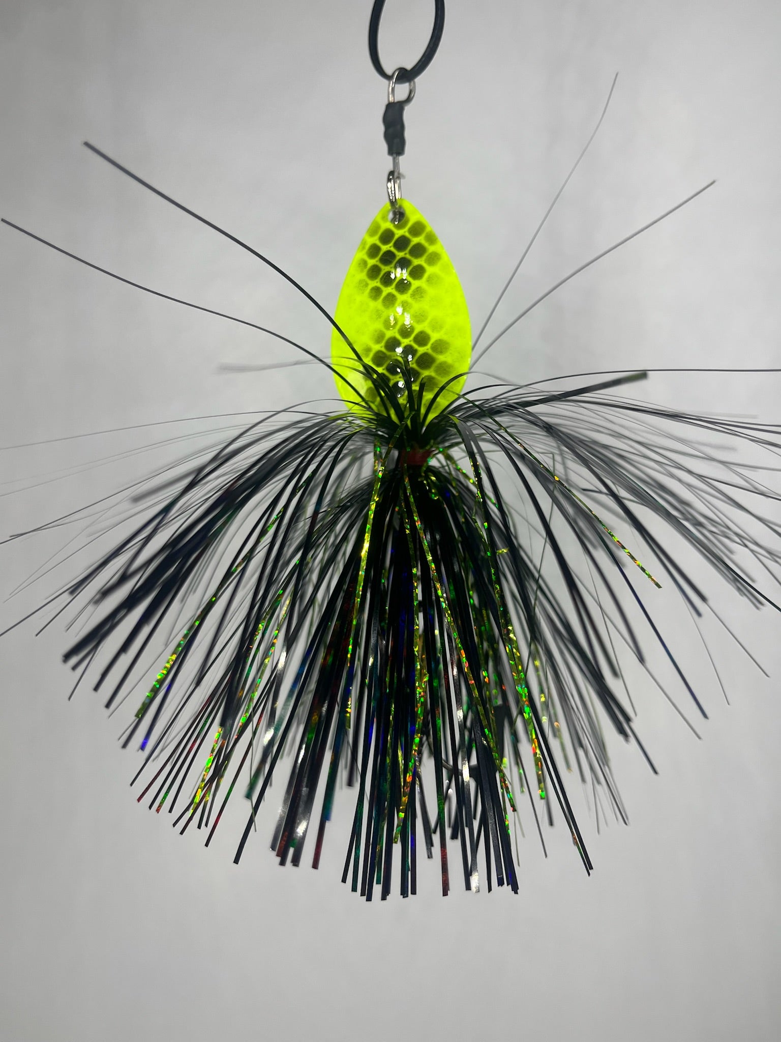Each bait is made with .051 Stainless Steel wire one 3/0 treble hook with a size 7 blade and our hand tied Flashabou skirt.